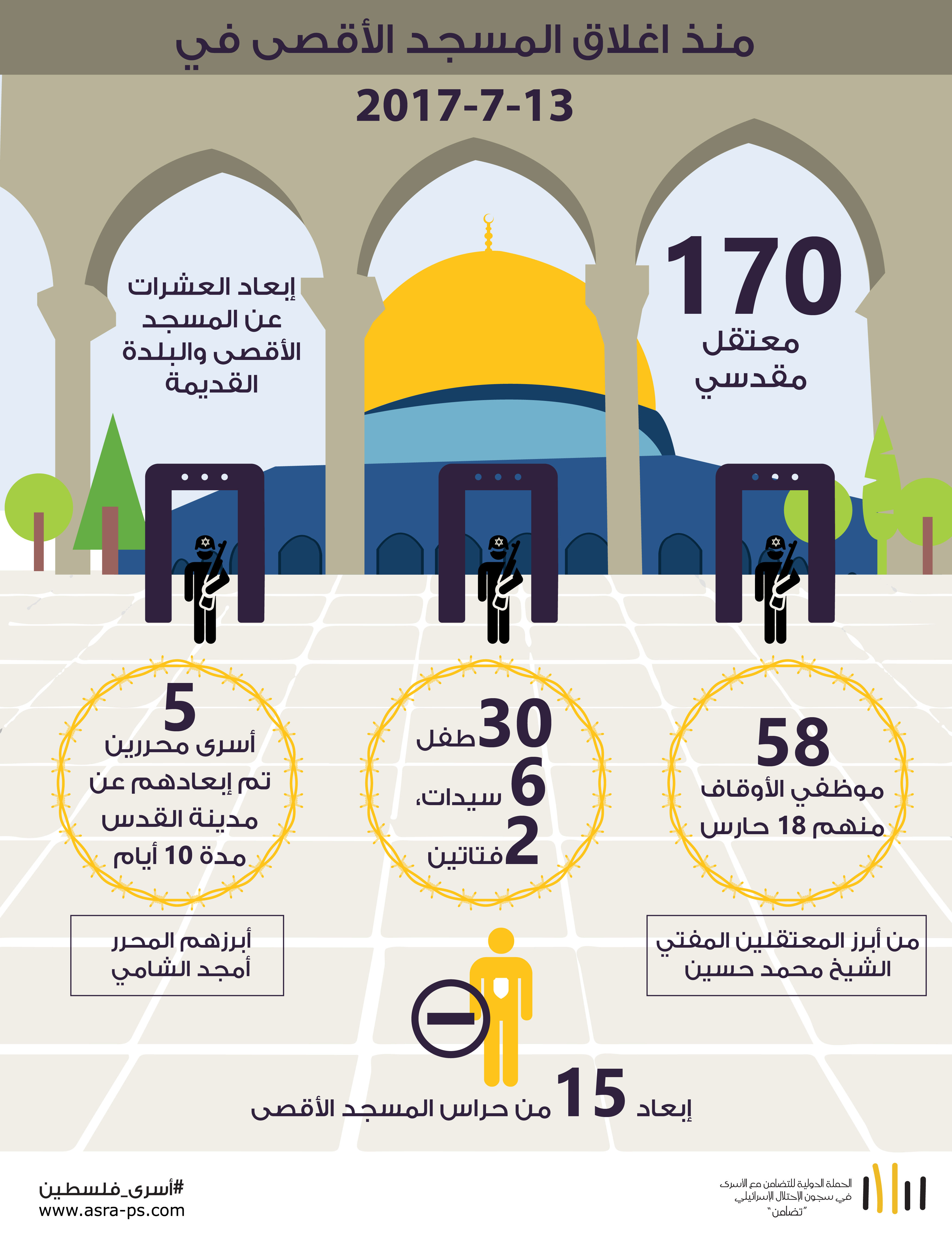 انفوغراف عن الاعتقالات والابعاد الذي تعرض له المرابطين والمقدسيين منذ اغلاق المسجد الأقصى في 13-7-2017