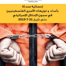 إحصائيات محدثة بأعداد وتوزيعات الأسرى الفلسطينيين في سجون الإحتلال الإسرائيلي حتى تاريخ 31-7-2019